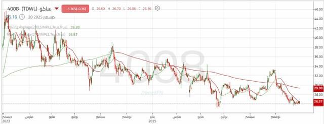 مباشر للأبحاث: يتداول سهم الشركة السعودية للعدد والأدوات "ساكو" ضمن اتجاه هابط رئيسي، حيث تعكس حركة السعر استمرار الضغوط البيعية، ويتداول السعر دون المتوسط المتحرك ودون خط اتجاه هابط ذي زاوية حادة مما يعكس الضغط البيعي المستمر.