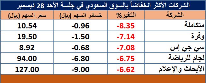 وتصدر سهم "متكاملة للتأمين" خسائر الأسهم السعودية بجلسة اليوم بنسبة 8.35%، ليتراجع إلى مستوى 10.54 ريال للسهم.