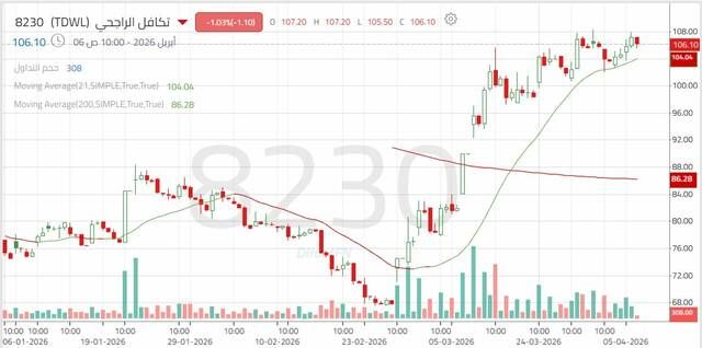 ويختبر السهم حالياً مستوى مقاومة هامة عند 108.30، مع بقاء السيناريو الصاعد قائماً بشرط الاستقرار أعلى هذا المستوى؛ مما يدعم استهداف نطاق 110.70 – 112.30. كما أن تجاوز هذه المستويات يعزز من فرص استمرار الصعود نحو 114.40 – 116.80. ويتحرك مؤشر القوة النسبية (RSI) أعلى المستوى المحايد؛ بما يدعم استمرار الزخم الشرائي