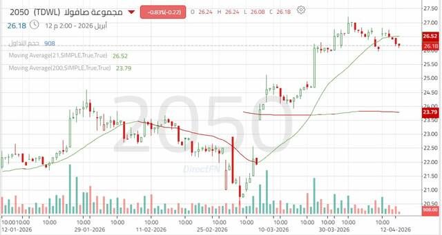في المقابل؛ فإن عودة التداول أعلى مستوى 26.80 ريال قد نشهد معاودة اختبار مقاومة 27.20 ريال لاختبار قدرة الزخم الصاعد على مواصلة الاتجاه.