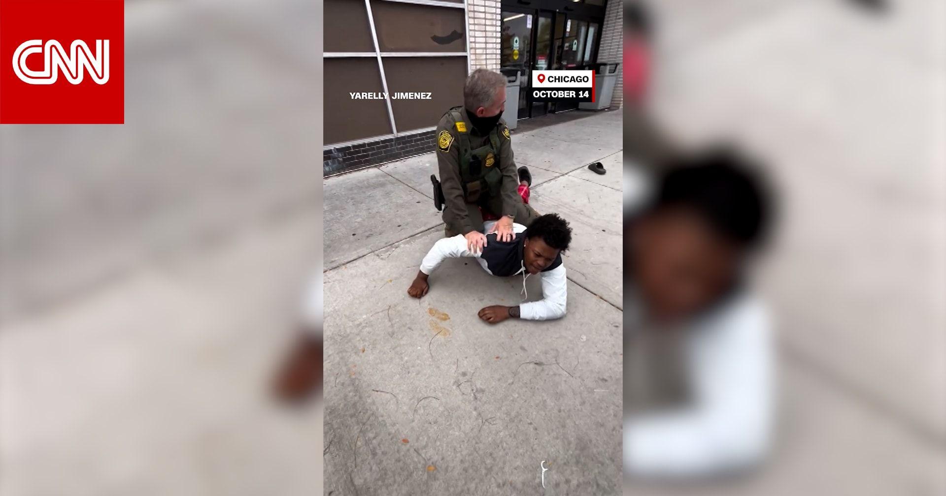 يُظهر مقطع فيديو أحد عناصر حرس الحدود وهو يُقيد رجلاً يدّعي أنه مواطن أمريكي خارج متجر "والغرينز" في شيكاغو.