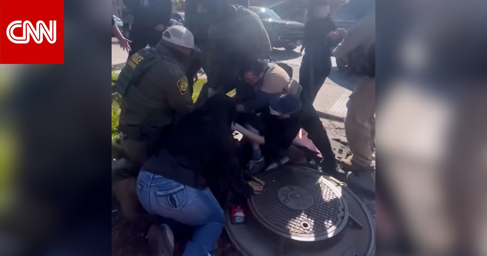 يبدو في مقطع الفيديو أن شخصين على الأقل كانا على الأرض يحاولان منع عناصر إدارة الجمارك وحماية الحدود من احتجاز شخص آخر.