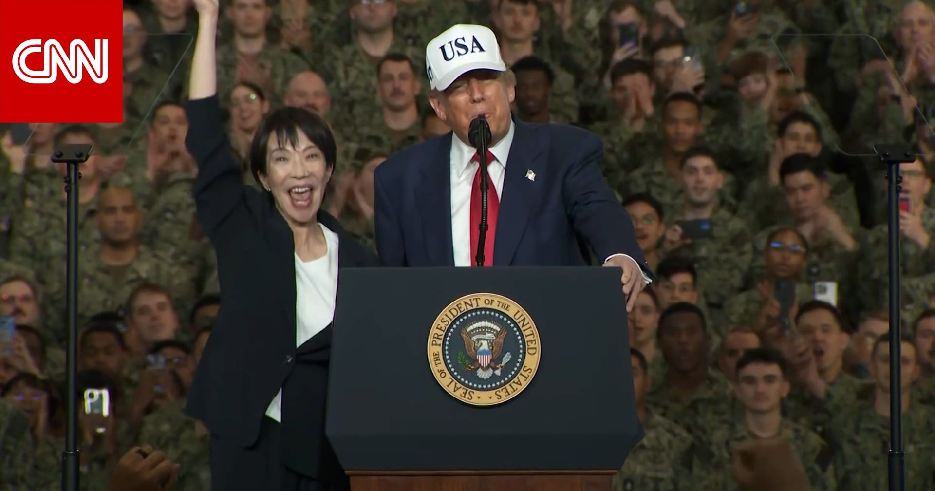 وصف الرئيس الأمريكي دونالد ترامب رئيسة الوزراء اليابانية ساناي تاكايتشي بأنها "الفائزة" أثناء حديثه إلى آلاف الجنود الأمريكيين على متن حاملة طائرات "يو إس إس جورج واشنطن" في قاعدة يوكوسوكا البحرية في وسط اليابان.