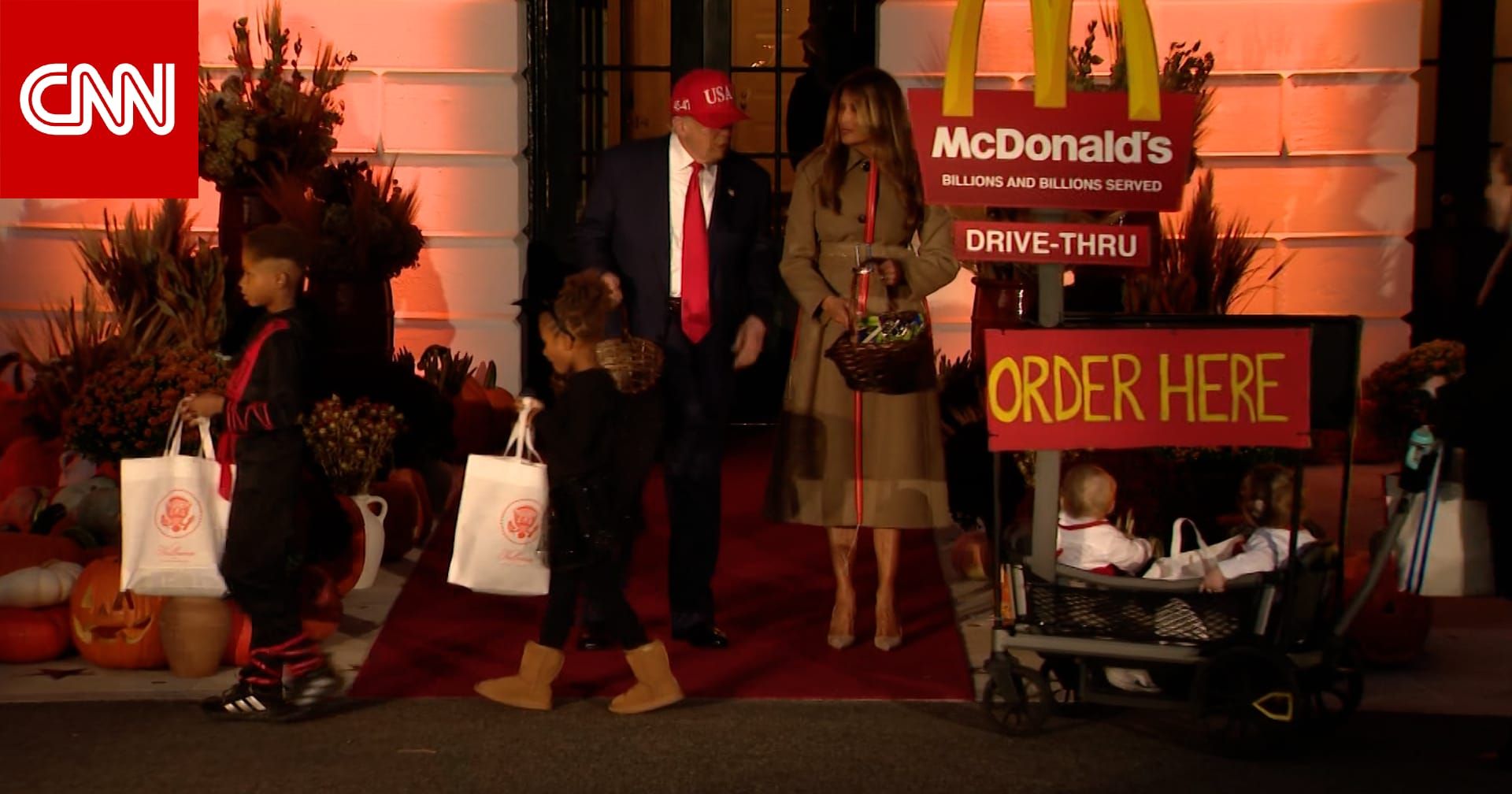 استضاف الرئيس الأمريكي، دونالد ترامب والسيدة الأولى للبلاد، ميلانيا ترامب عددًا من الأطفال خلال فعاليات الاحتفال بالهالوين التي أقيمت في البيت الأبيض.