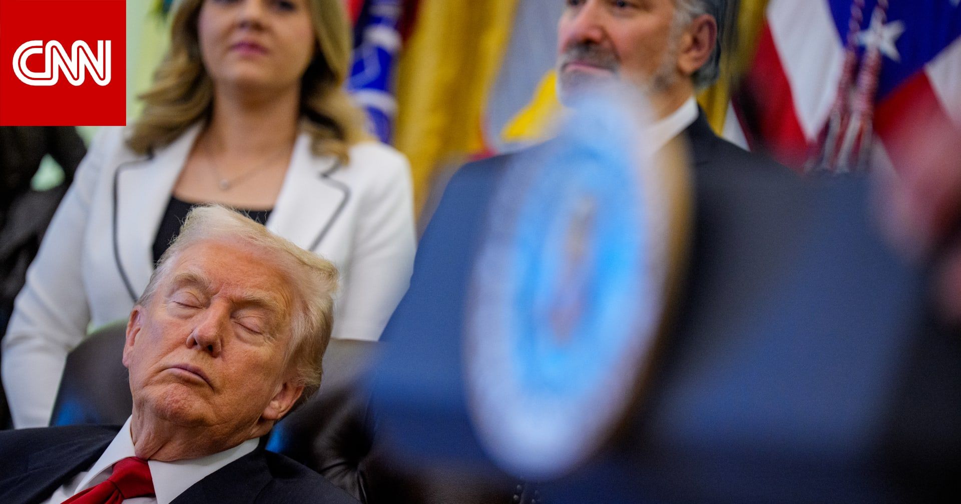 دبي، الإمارات العربية المتحدة (CNN)-- انتشرت صورٌ لدونالد ترامب وهو يُغمض عينيه خلال إعلانٍ في المكتب البيضاوي هذا الأسبوع على مواقع التواصل الاجتماعي، حيث استغلّ معارضو الرئيس الأمريكي، اللقطات لإثارة تساؤلاتٍ حول أداء ترامب في العمل.