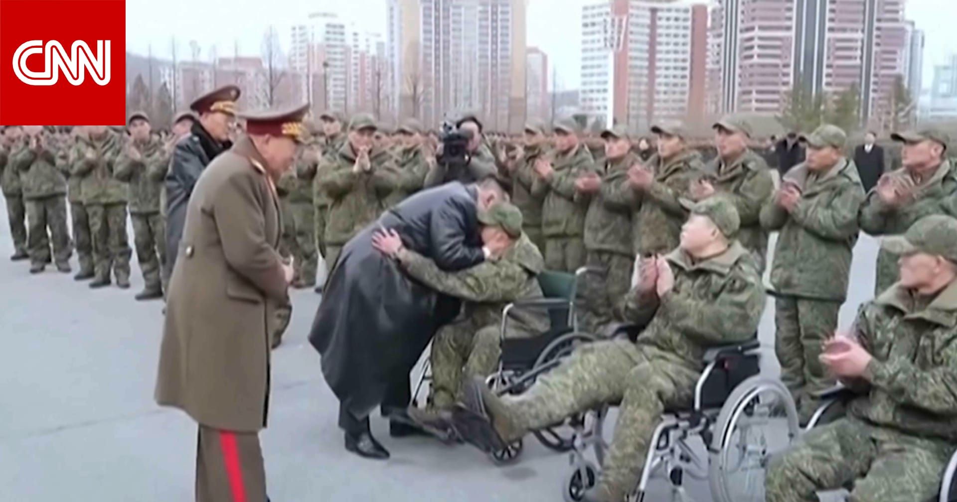 ظهر كيم جونغ أون الرئيس الكوري الشمالي وهو يؤدي التحية العسكرية ويعانق جنودًا جرحى على الكراسي المتحركة.