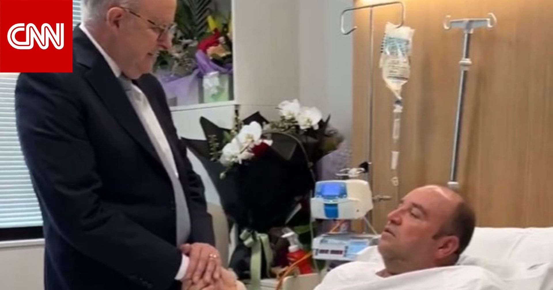 (CNN)-- زار رئيس الوزراء الأسترالي، أنتوني ألبانيز، الثلاثاء، أحمد الأحمد، أحد المارة الذي انتزع سلاحًا من أحد مهاجمي شاطئ بوندي في مدينة سيدني، في المستشفى حيث يتلقى العلاج من إصاباته.