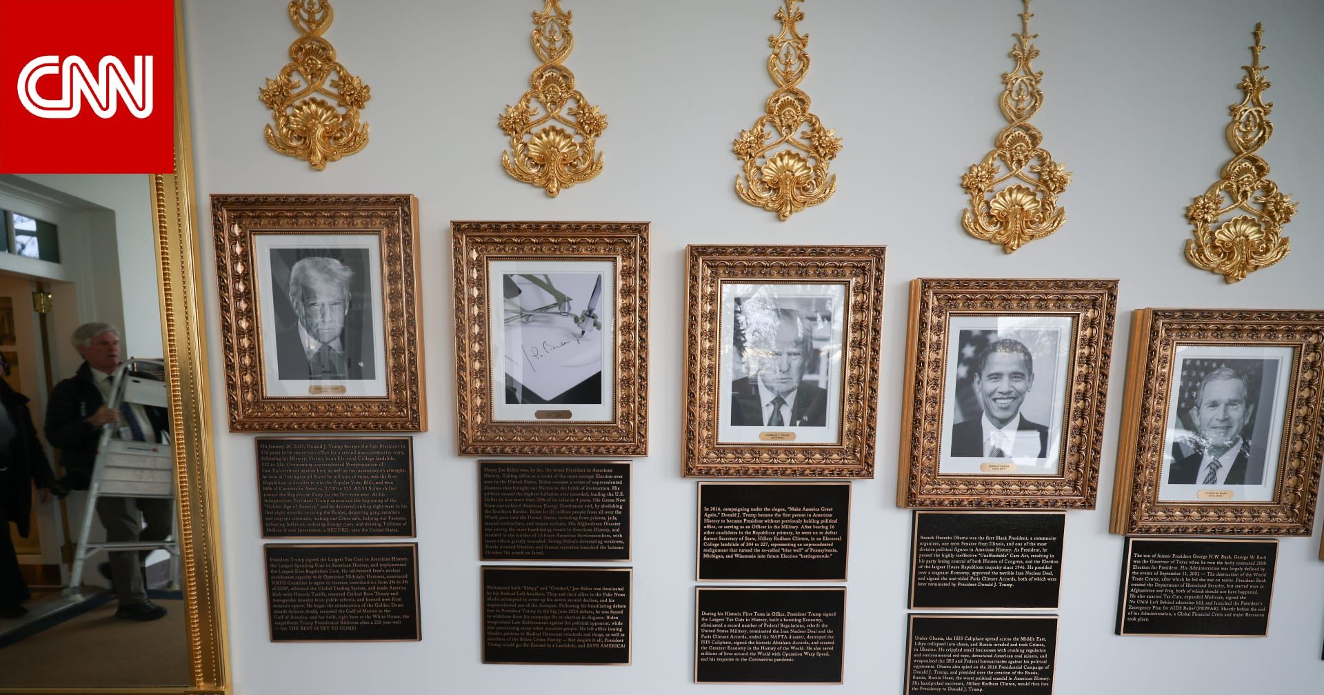 (CNN) -- وضع البيت الأبيض لوحات في "ممشى الرؤساء" تُقدم أوصافًا لأسلاف الرئيس دونالد ترامب، مكتوبة غالبًا بأسلوب منشوراته على وسائل التواصل الاجتماعي، بما في ذلك الإهانات والادعاءات التي لا أساس لها واستخدام الأحرف الكبيرة بشكل عشوائي.