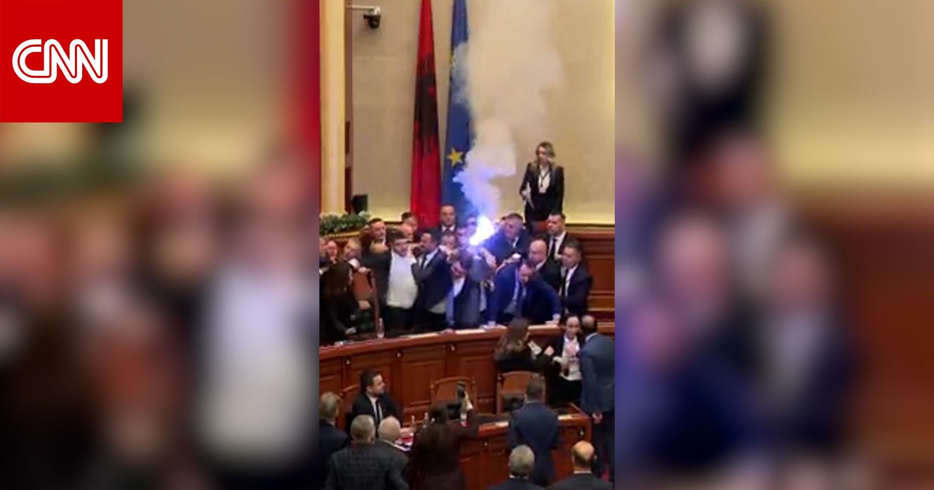 يُظهر الفيديو نواب المعارضة وهم يشعلون الألعاب النارية، ويرمون زجاجات الماء على رئيس البرلمان، ويتشاجرون في محاولة لعرقلة الجلسة.