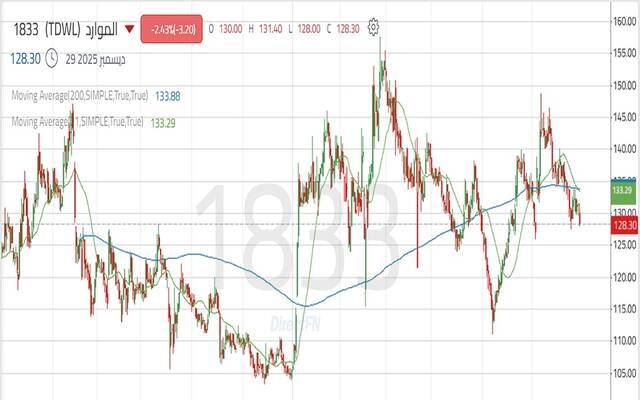 مباشر للأبحاث: يتداول سهم شركة الموارد للقوى البشرية "الموارد" حاليًا ضمن اتجاه هابط، حيث تعكس حركة السهم استمرار الضغوط البيعية، ويأتي ذلك بالتزامن مع التداول دون دعم ثانوي عند 134.30 ريال، واختراق خط الاتجاه الصاعد، ما يشير إلى ضعف القوة الشرائية في الوقت الحالي.