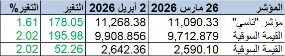 مباشر - ثابت شحاتة: شهد سوق الأسهم السعودية ارتفاعاً ملحوظاً خلال الأسبوع المنتهي في 2 أبريل 2026، في ظل صعود شبه جماعي للقطاعات، وسط تحسن السيولة مقارنة بالأسبوع السابق.