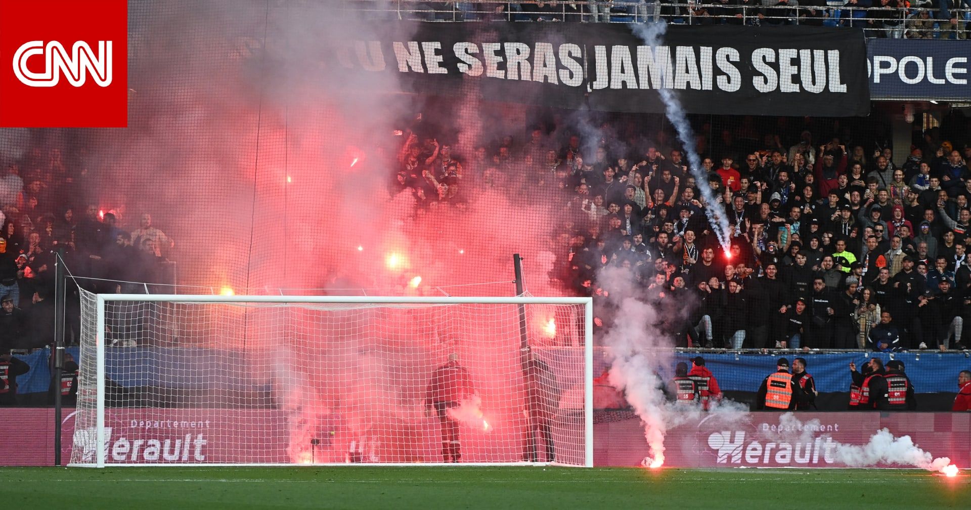 وأظهر مقطع فيديو دخاناً أسود يتصاعد من خلف أحد المرميين داخل معقل نادي مونبلييه، "دي لا موسون"، بعد أن ألقى بعض المشجعين ألعاباً نارية على أرض الملعب.