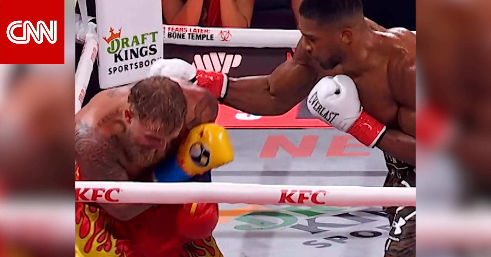 وبُثّ النزال مباشرةً على نتفليكس، وبدا أن جوشوا قد كسر فك بول خلال النزال.