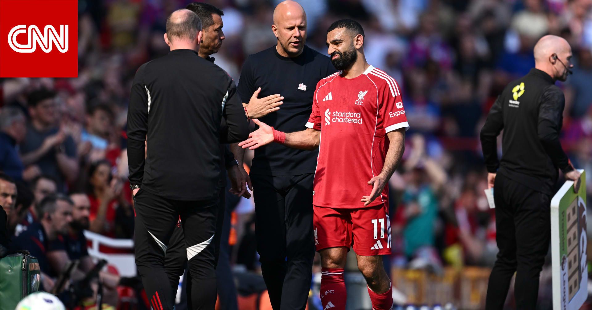 عقب صافرة النهاية بفوز "الريدز" بثلاثة أهداف لواحد، سُئل المدرب أرني سلوت في مؤتمر صحفي عمّا إذا كانت الإصابة ستبعد النجم المصري عن المباريات المتبقية للفريق هذا الموسم 2026/2025.