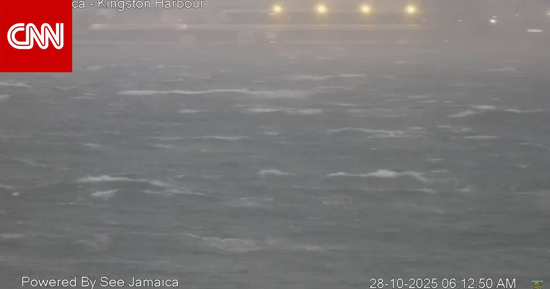 تظهر هذه اللقطات طلوع الفجر فوق ميناء كينغستون في جامايكا، الثلاثاء، مع مواصلة إعصار "ميليسا" الذي بلغ الفئة الخامسة تحركه، حيث كانت البلاد تترقب وصوله إلى اليابسة.