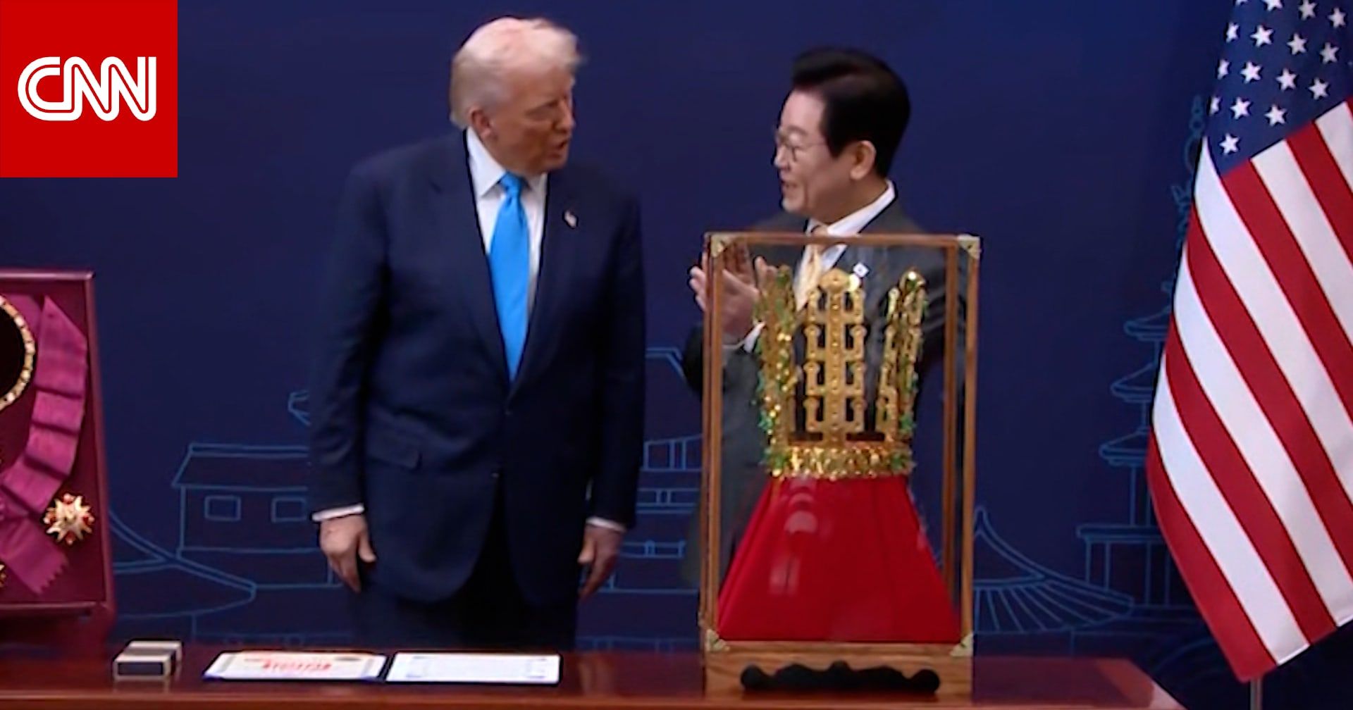 تلقى الرئيس الأمريكي، دونالد ترامب، نسخة طبق الأصل من تاج ذهبي تاريخي من رئيس كوريا الجنوبية لي جاي ميونغ.