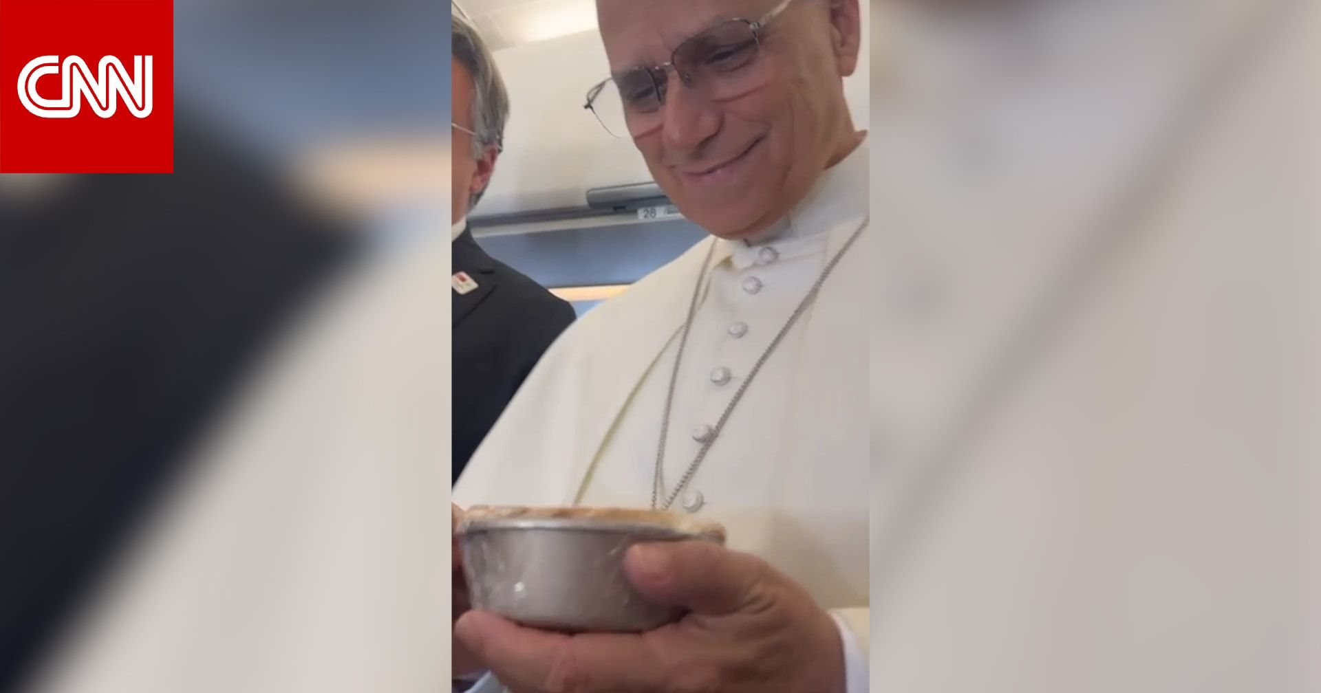 في حين يقدم كريستوفر لامب، مراسل شبكة CNN في الفاتيكان، تقريره من على متن الطائرة برفقتهم.