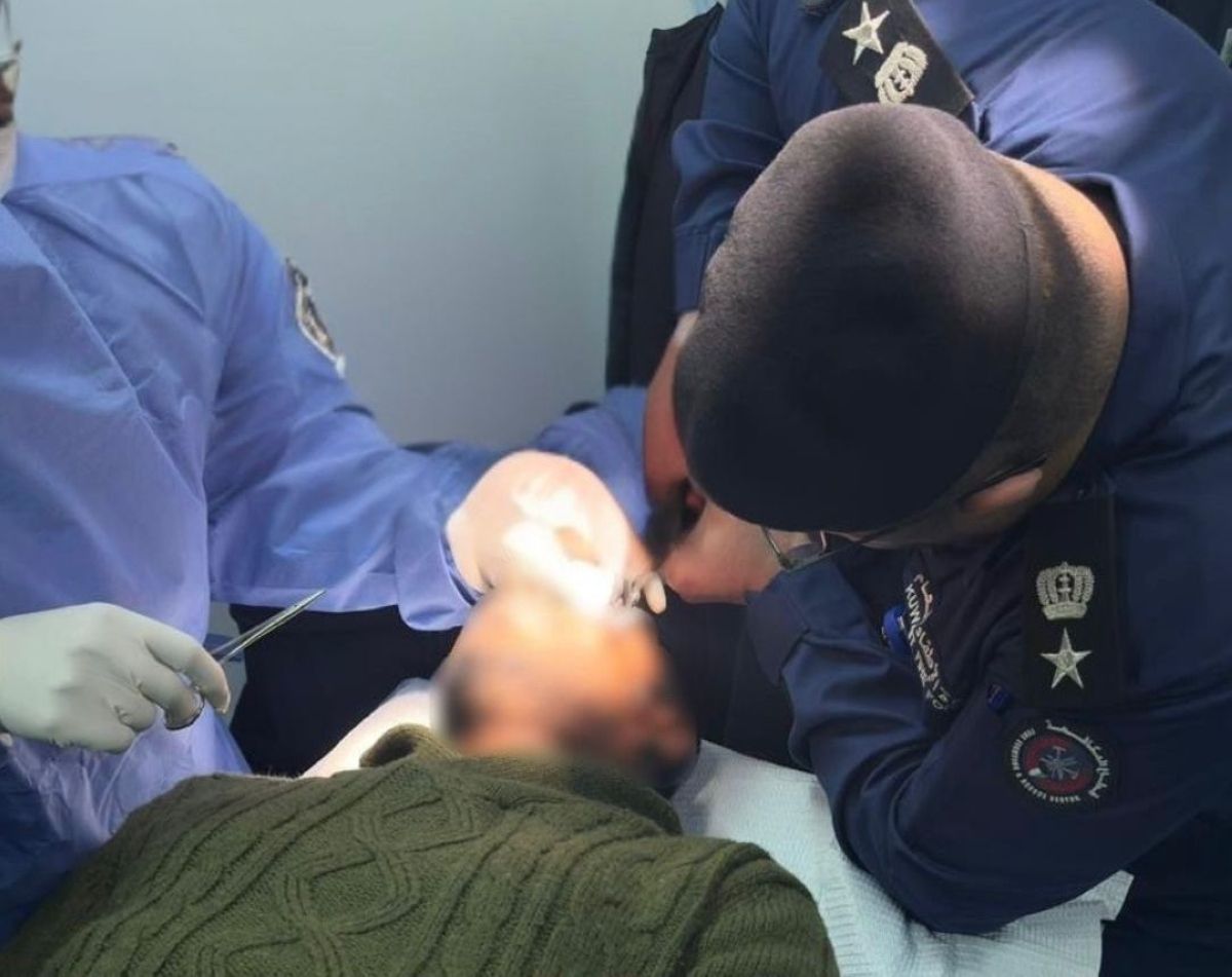 وقامت الفرقة باستخدام القاطعة المخصصة لإزالة المعدات من الوجه.