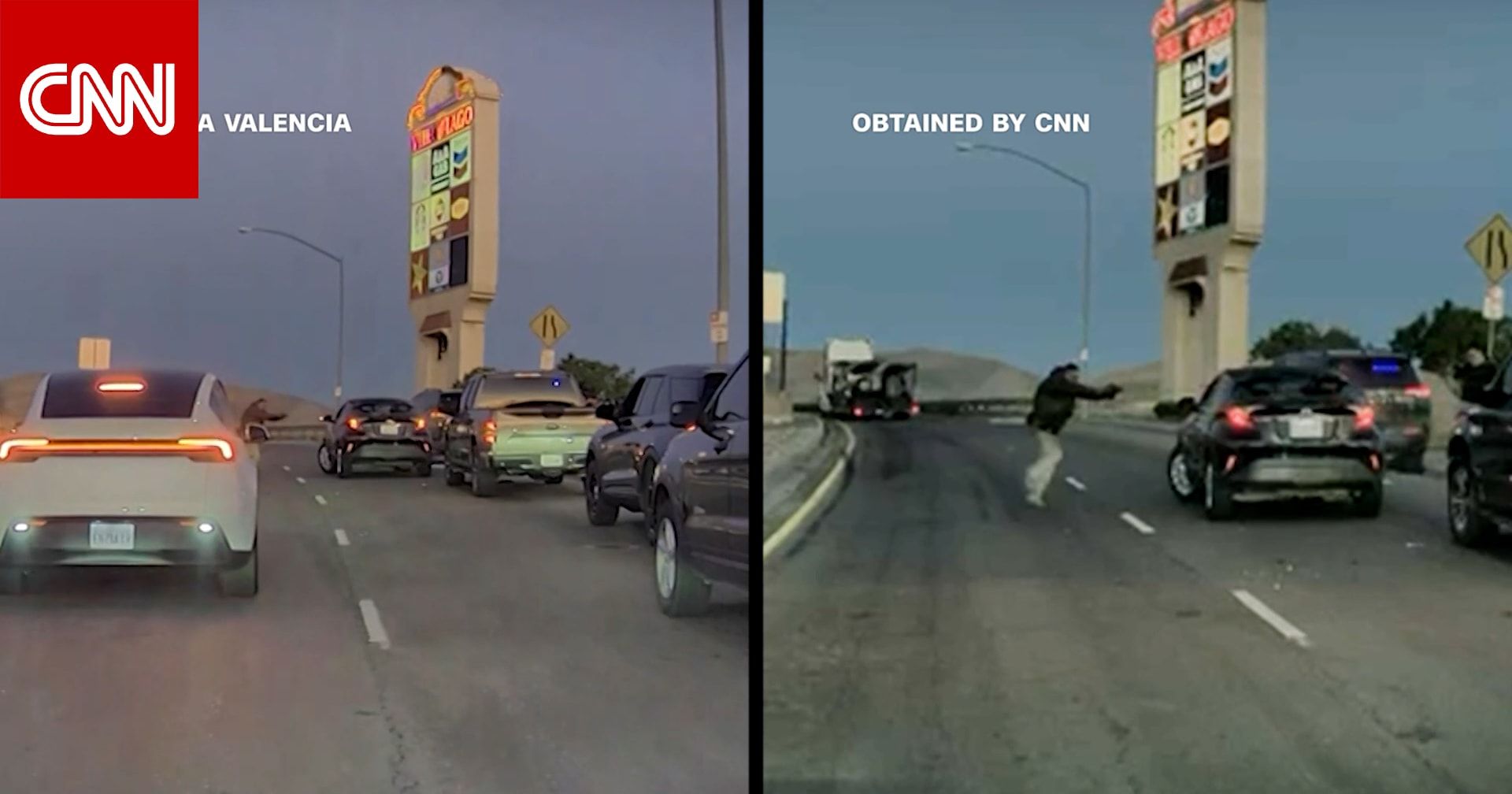 حصلت شبكة CNN على لقطات من كاميرا مثبتة على سيارة تُظهر إطلاق نار شارك فيه عناصر من إدارة الهجرة والجمارك الأمريكية (ICE) في وسط كاليفورنيا، حيث حاصرت الشرطة سيارة بعد اصطدامها.